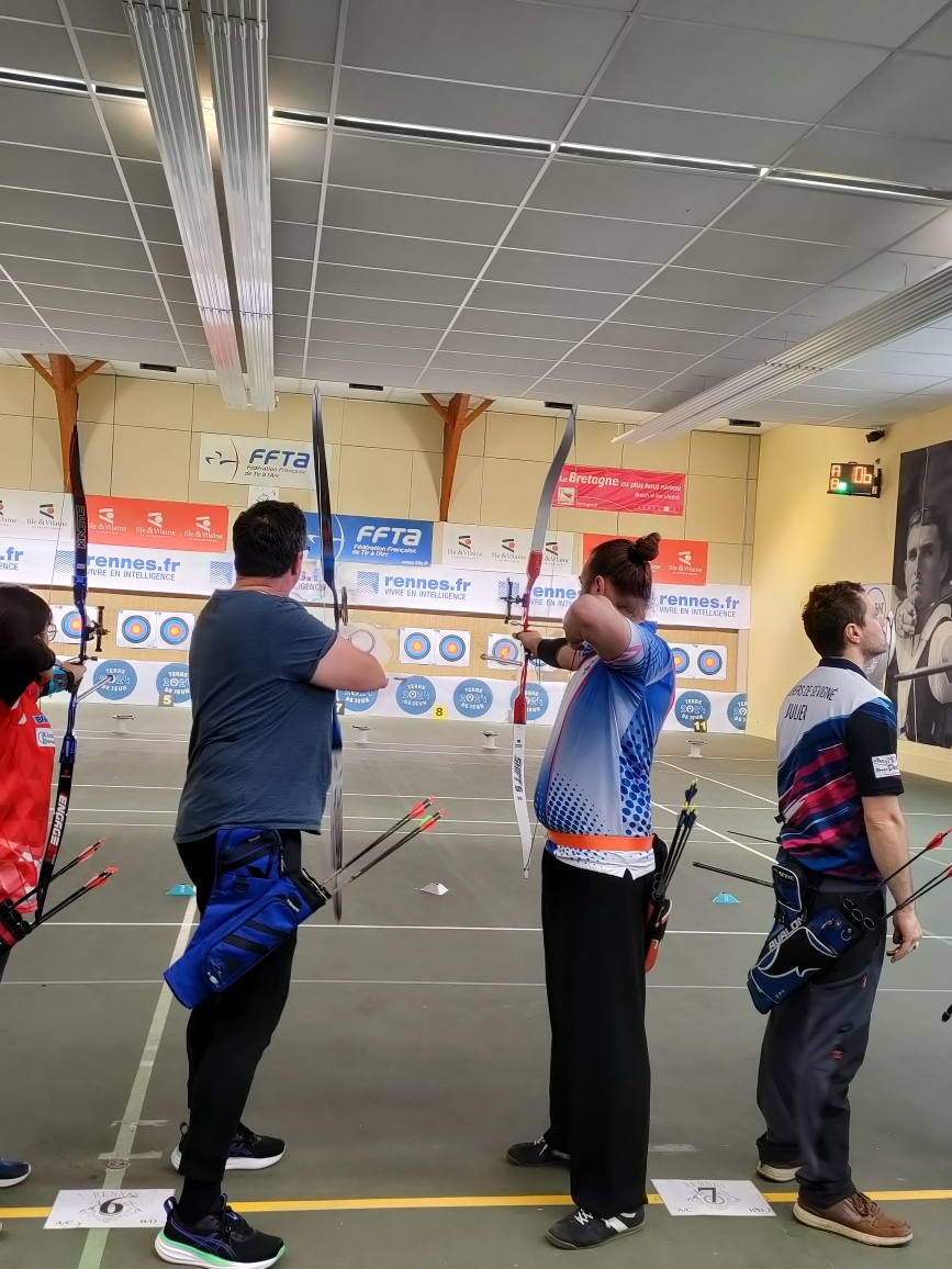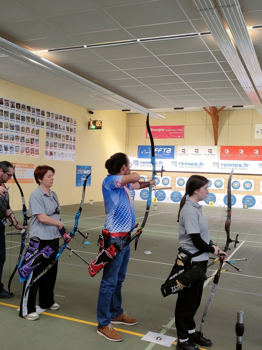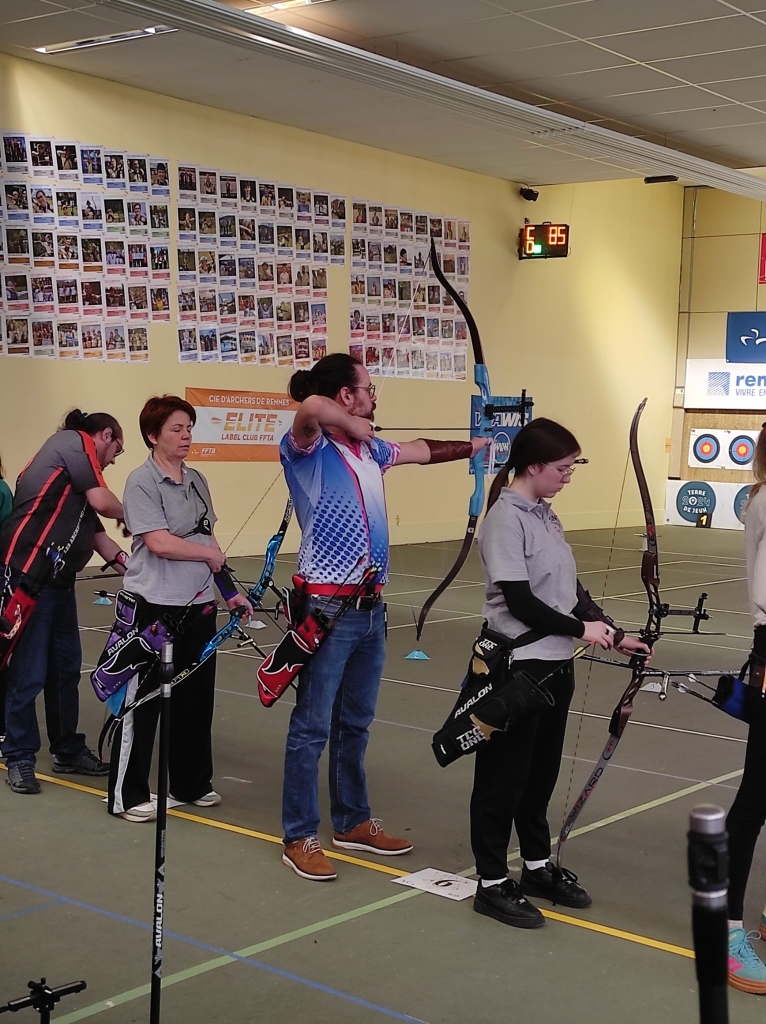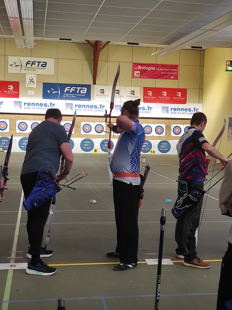 Ce dimanche 8 mars, Fabien et Thomas se sont présentés au concours débutants organisé par la compagnie des Archers de Rennes. Pascal et Jean-Louis les accompagnaient pour les encourager.