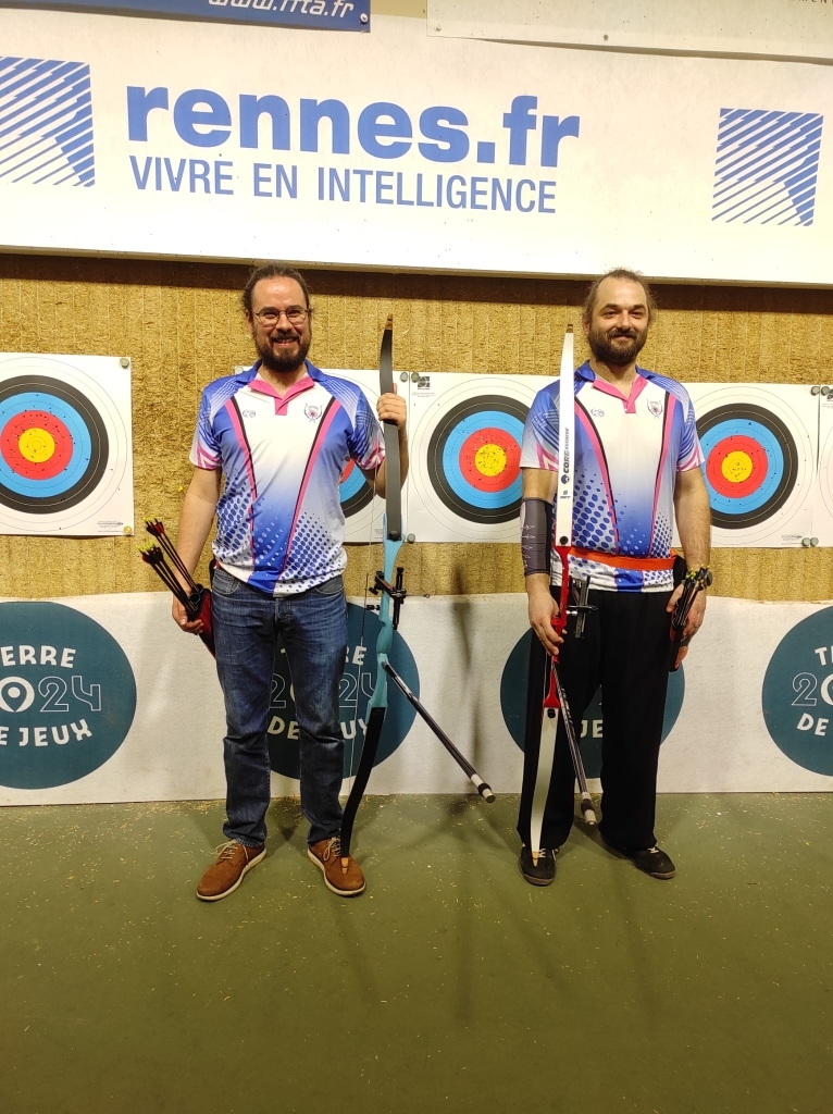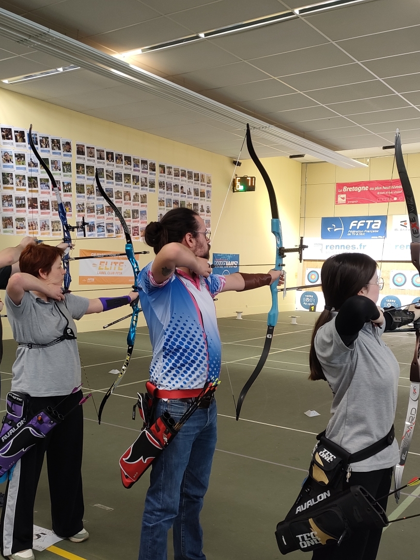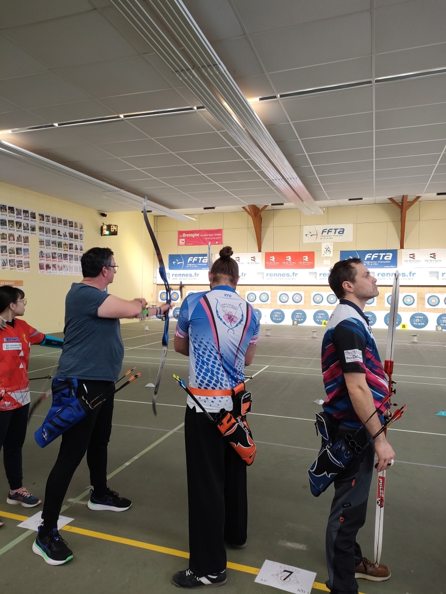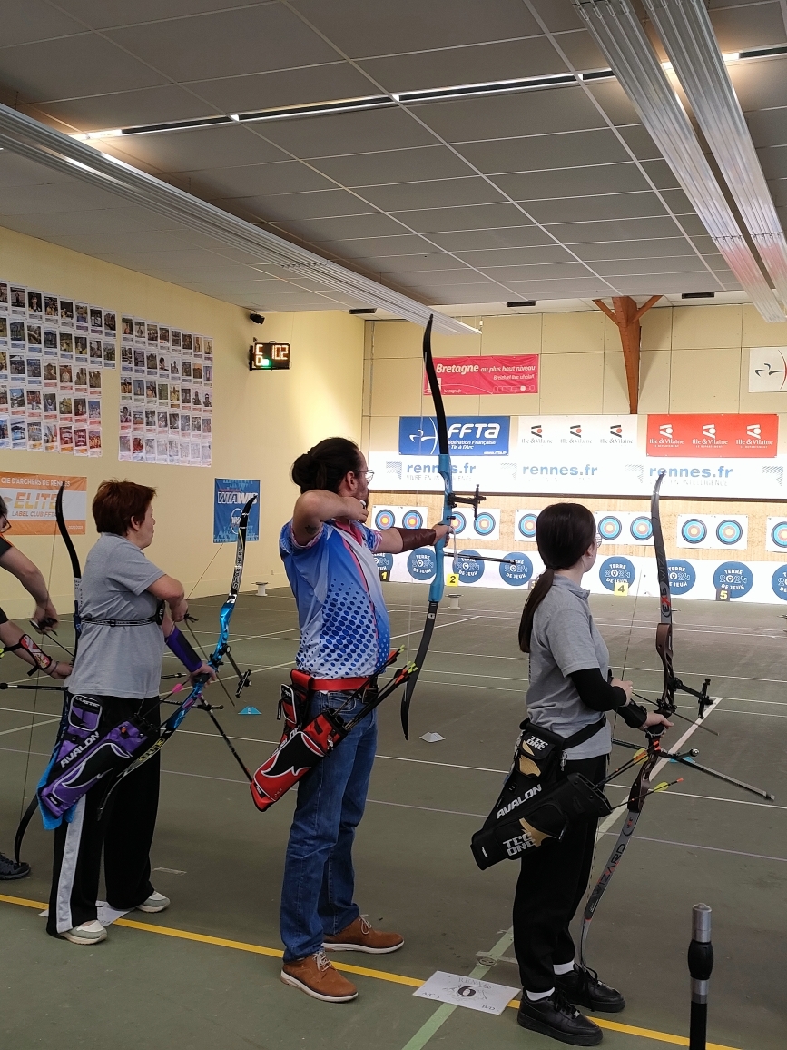 Ce dimanche 8 mars, Fabien et Thomas se sont présentés au concours débutants organisé par la compagnie des Archers de Rennes. Pascal et Jean-Louis les accompagnaient pour les encourager.