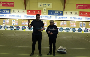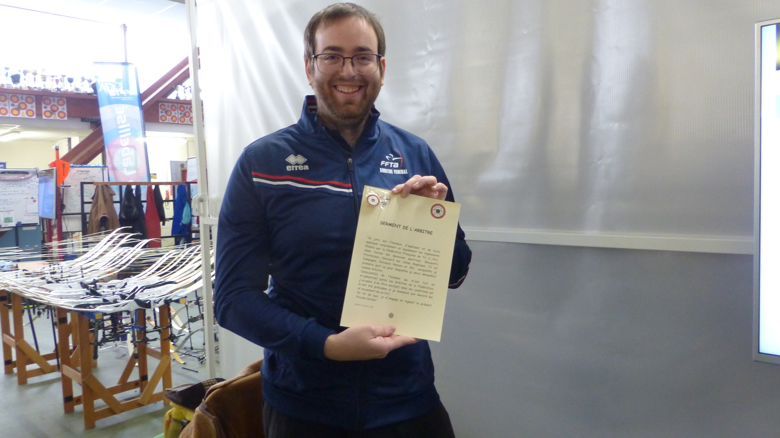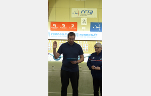 Seul nouvel arbitre d'Ille et Vilaine avec l'option "Cibles" de ce millésime, il a été invité a prononcé son serment par Marie-Pierre, responsable des arbitres de la région Bretagne. Après la signature du procès-verbal par Marie-Pierre et Olivier, il devient officiellement un des arbitres de la FFTA.