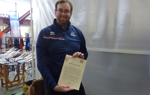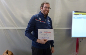 Nous lui souhaitons un beau parcours dans l'engagement qu'il vient de prendre, qui couronne une année de formation studieuse comme le soulignait Marie-Pierre. En dehors des règlements et des nombreuses précisions techniques à connaître, Olivier garde un très bon souvenir des nombreuses anecdotes venues enrichir la formation et a peu de regrets, hormis peut-être les délais pour connaître les résultats des examens, surtout celui du tronc commun ... qu'il a, par ailleurs, brillamment réussi ! Et merci à Laetitia, Manon, Pascal et Jean-Louis qui étaient présents pour soutenir Olivier ![]()