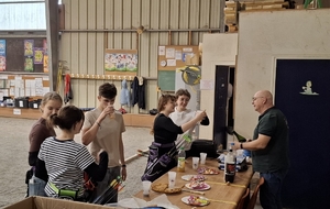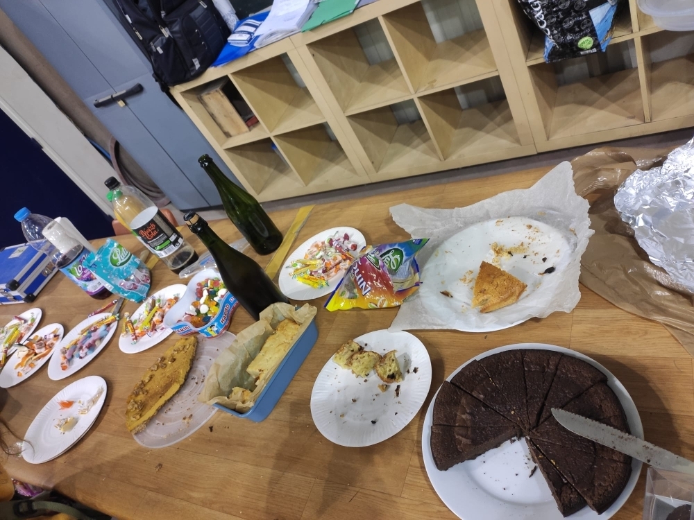 Plus ou moins faciles à atteindre, le code trouvé donnait accès à une récompense ! Que ce soit chez les plus jeunes (où certaines petites mains peinaient à maintenir les bonbons) ou chez les plus âgés (comme quoi l'adage se confirme : "il y a un enfant qui sommeille en chaque adulte"), l'enthousiasme manifesté pour cette activité a contribué à faire baisser rapidement le nombre des friandises achetées pour l'occasion ! Dans le même temps, grâce aux talents culinaires des uns et des autres, les gâteaux au butternut, au yaourth, aux pommes ou encore au chocolat (et j'en oublie je crois) n'ont pas eu le temps de dire "Ouf" ...