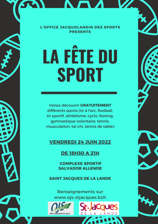 Le vendredi 24 juin 2022, de 18h30 à 21h, aura lieu un nouvel événement sportif sur la commune de Saint Jacques de la Lande : la fête du sport. Une manifestation au complexe sportif Salvador Allende qui vise à promouvoir les différents sports présents dans toute la ville avec plusieurs associations qui se feront un plaisir de vous initier gratuitement à leurs activités : tir à l’arc, football, tir sportif, athlétisme, cyclo, footing, gymnastique volontaire, tennis, musculation, taï chi et tennis de table. L’OJS, en partenariat avec la ville, proposera également des activités sur place. Un moment convivial en cette saison estivale et qui se terminera par un pot pour clore cette belle soirée. Venez nombreux, et en famille, afin de vous défier sur un maximum d’activités.