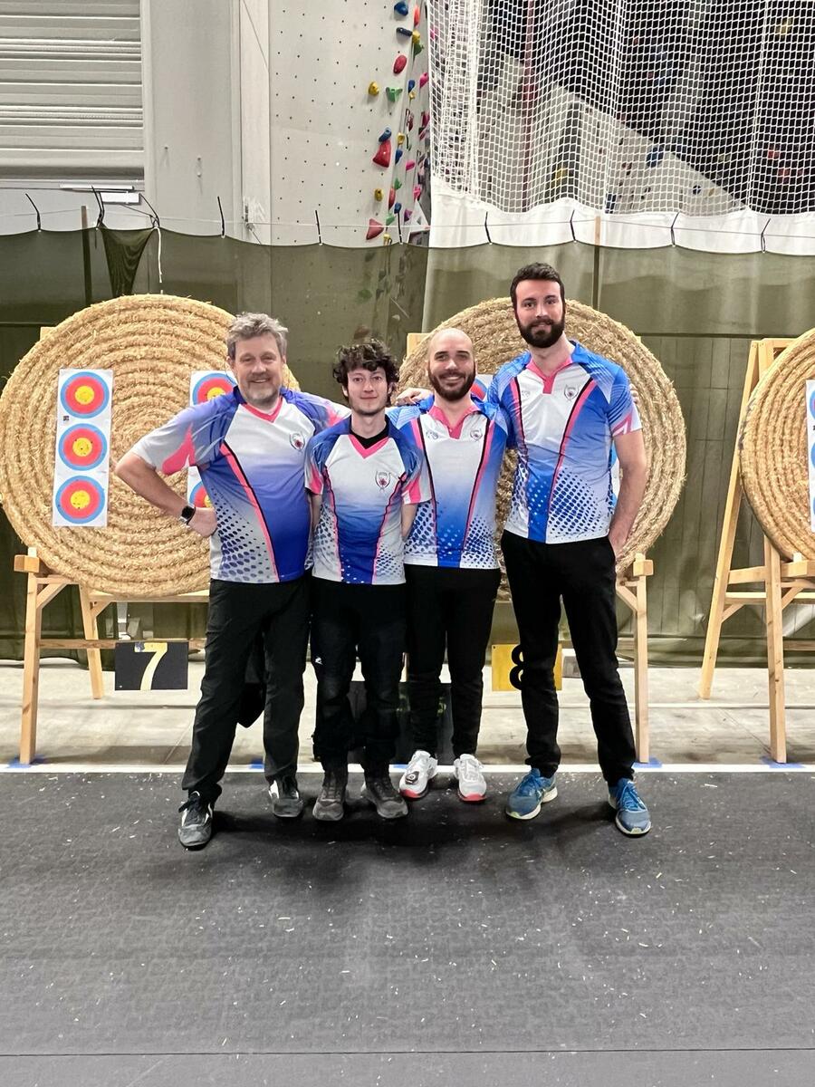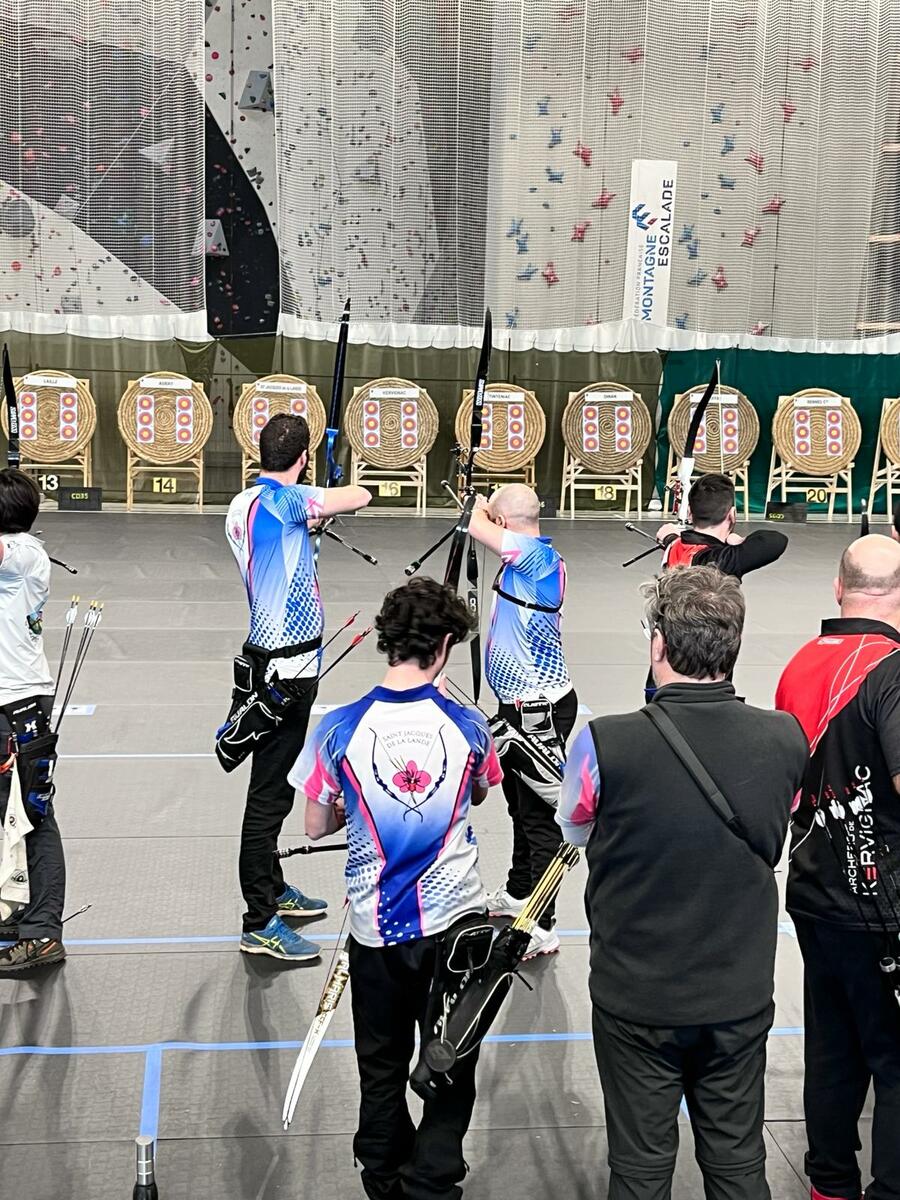 Dimanche 11 février 2024, notre équipe homme classique (composée de Théo, Yoann, Paul-Antoine et Xavier), sans oublier Camille derrière la jumelle et qui publie sur Instagram - les archers de la lande 35, était bien présente à Noyal-sur-Vilaine pour le championnat régional de Bretagne de tir à 18 m par équipes.