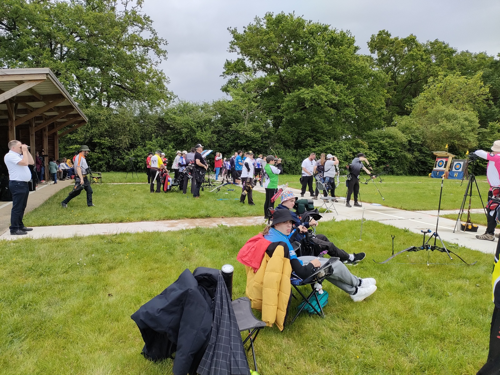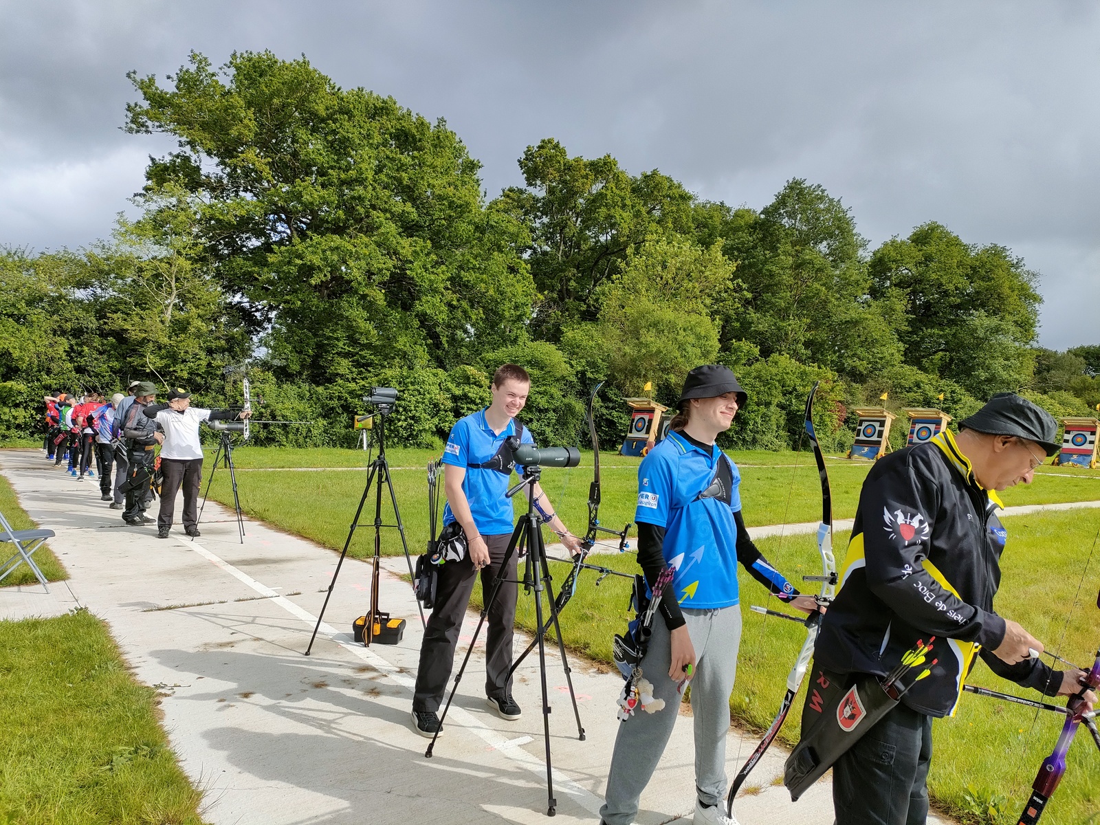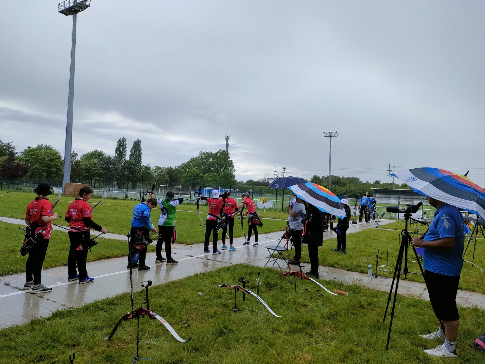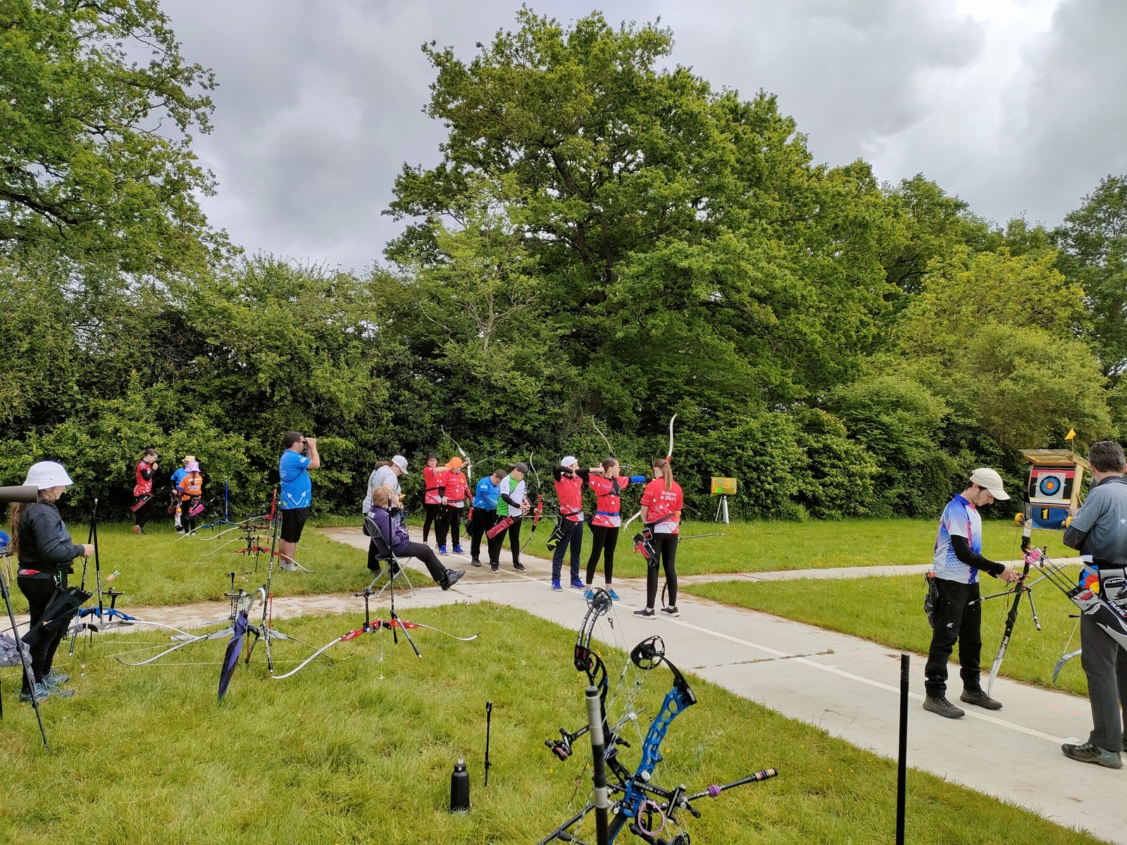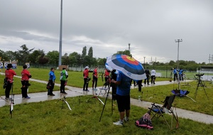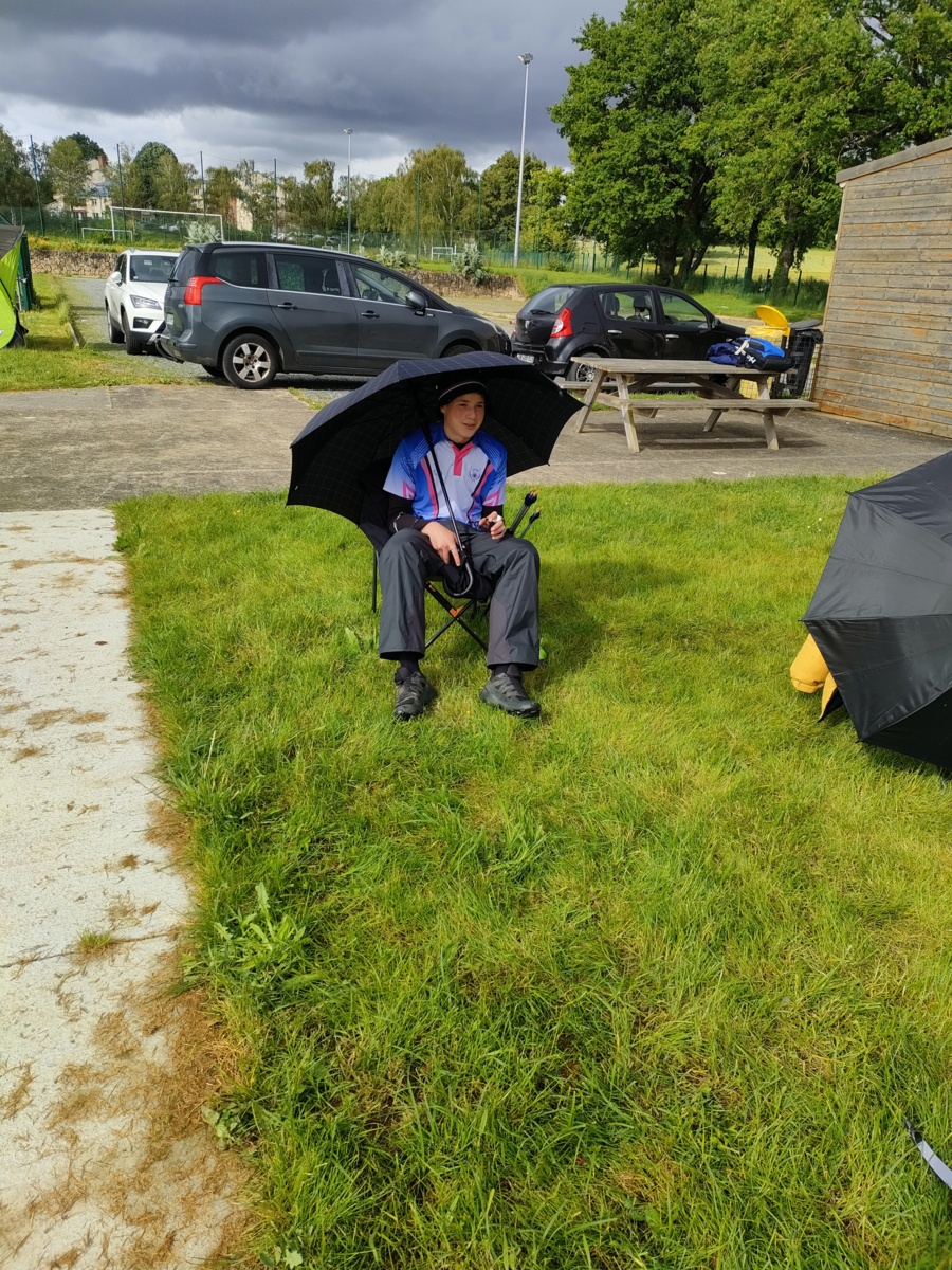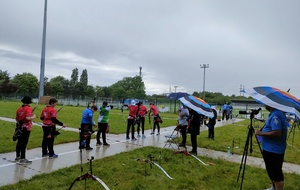 Les archers présents, jeunes et parfois ... moins jeunes, ont dû s'adapter à ces moments particuliers où la pluie ruisselle sur le visage au moment de viser, voire vous oblige à "revenir" pour reprendre la séquence de tir !