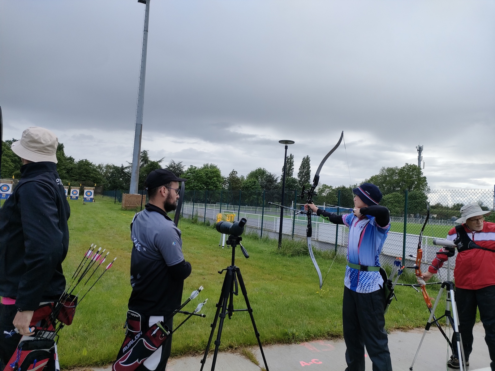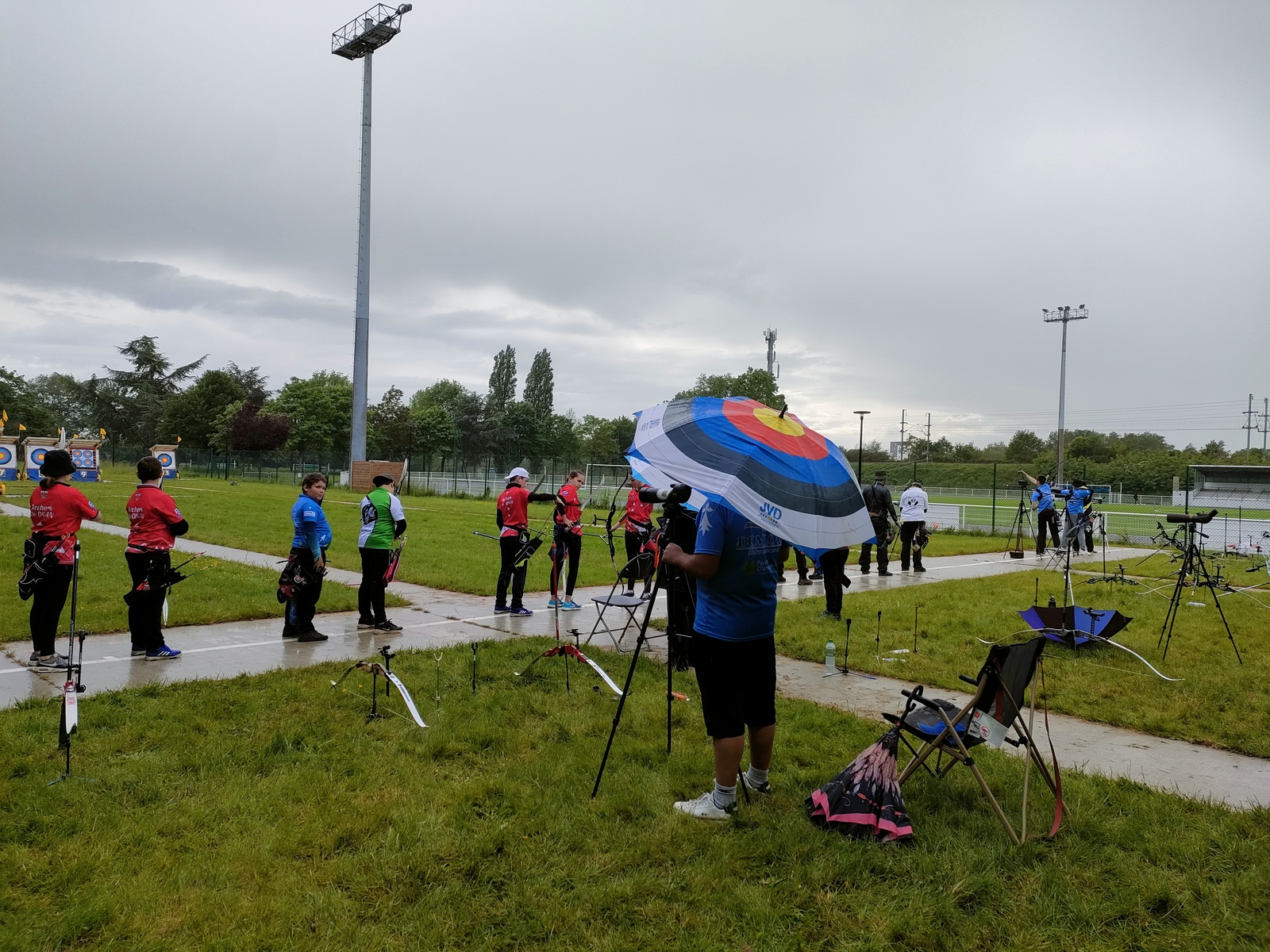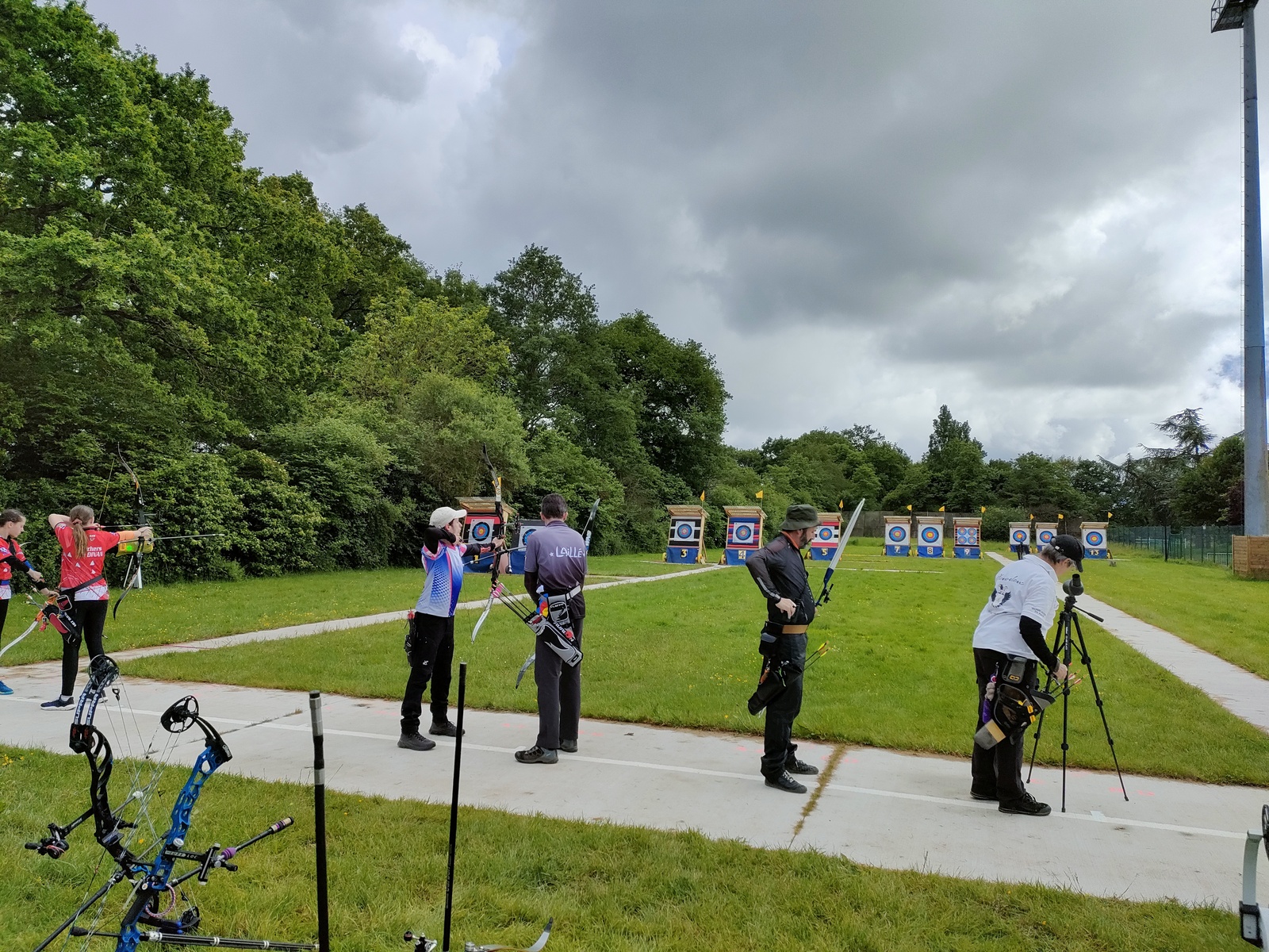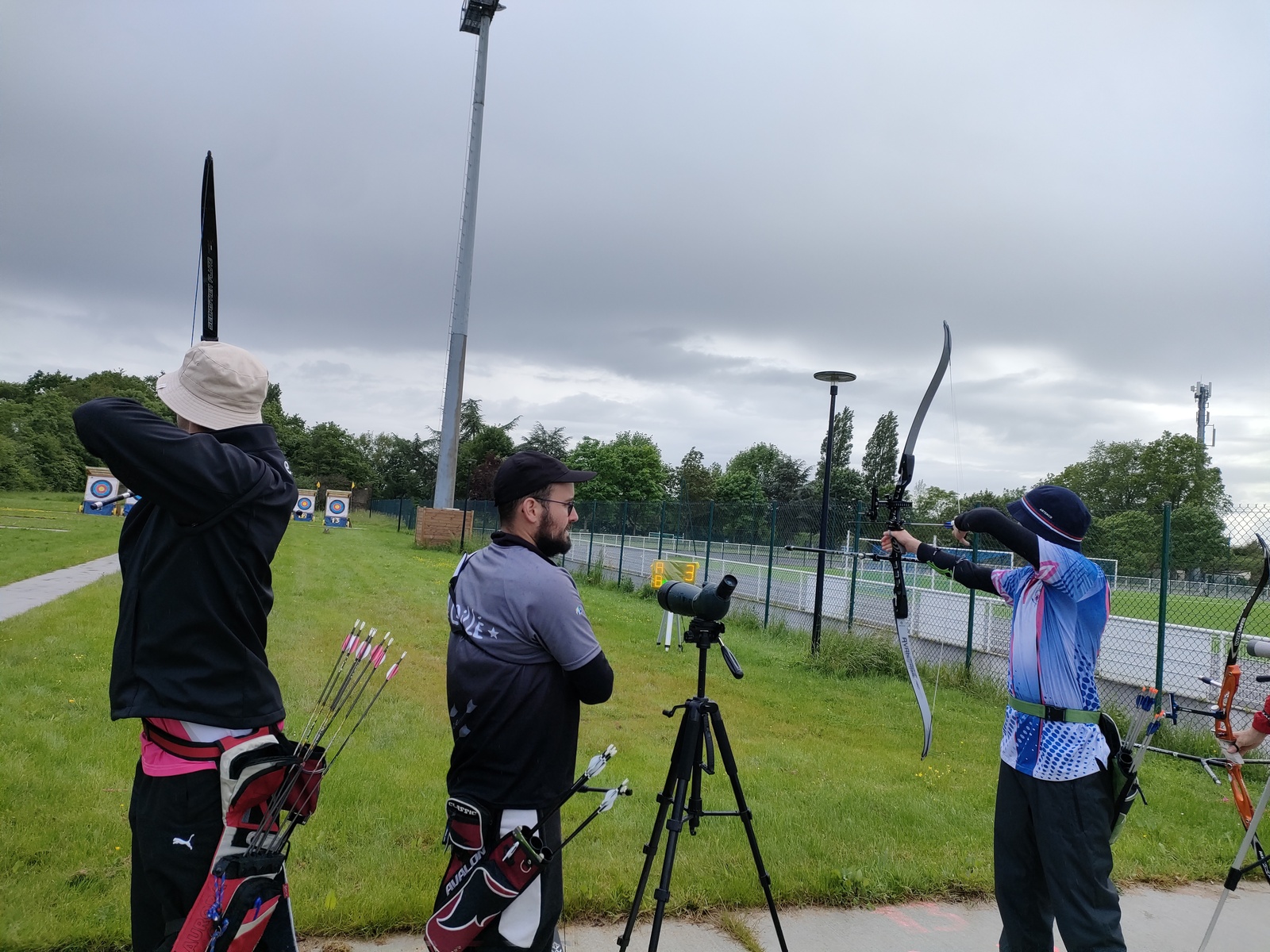 Les archers présents, jeunes et parfois ... moins jeunes, ont dû s'adapter à ces moments particuliers où la pluie ruisselle sur le visage au moment de viser, voire vous oblige à "revenir" pour reprendre la séquence de tir !