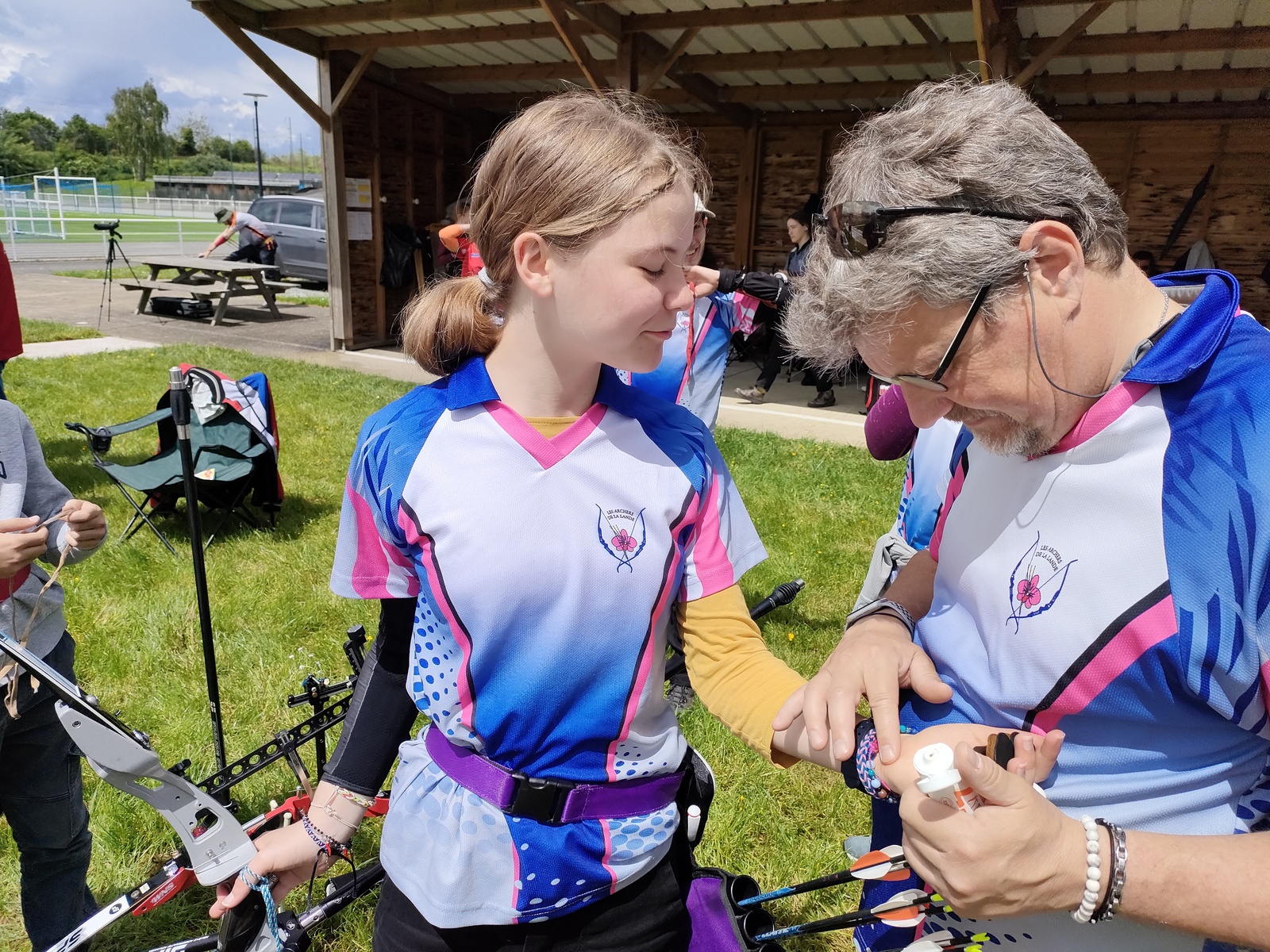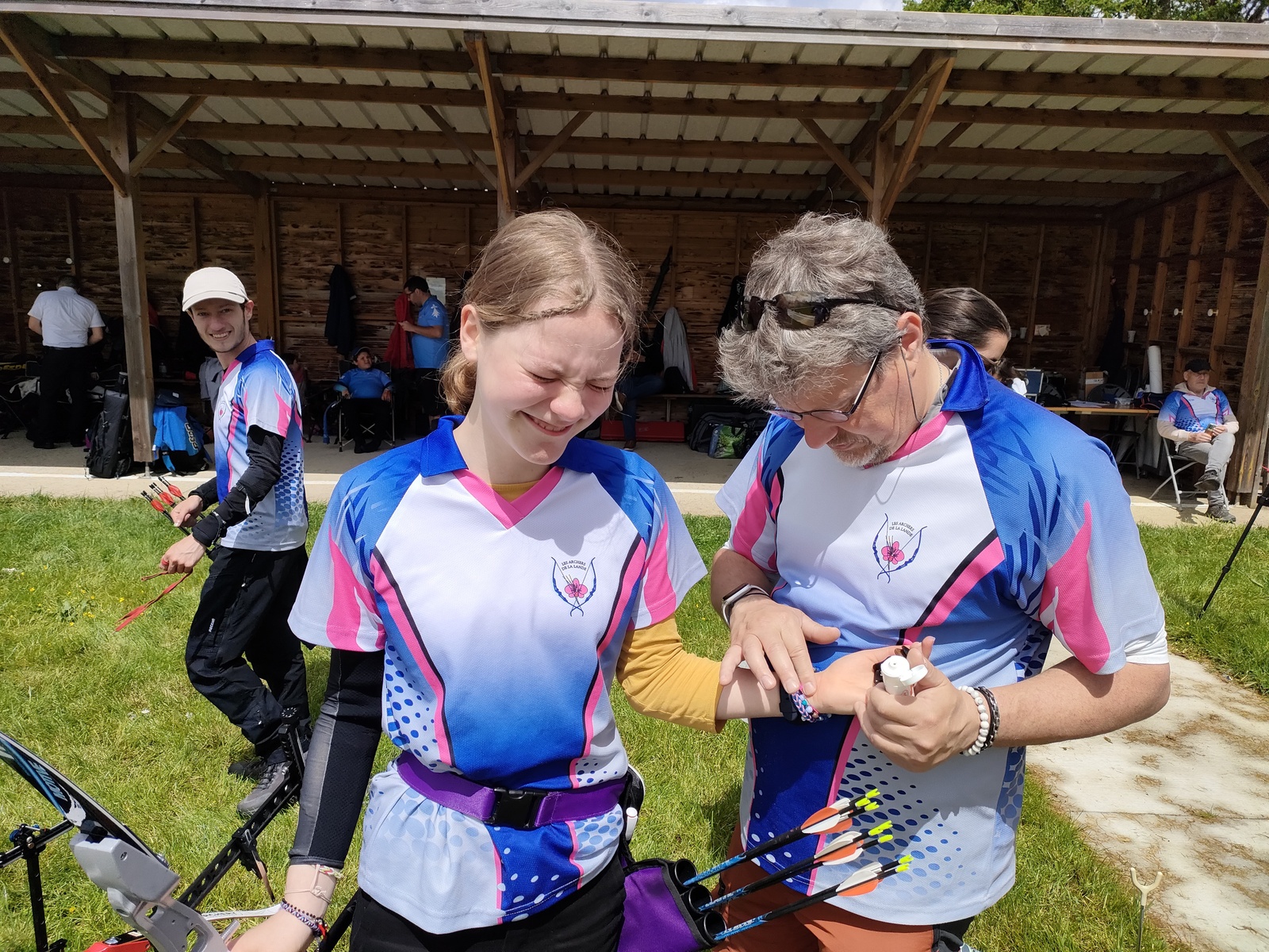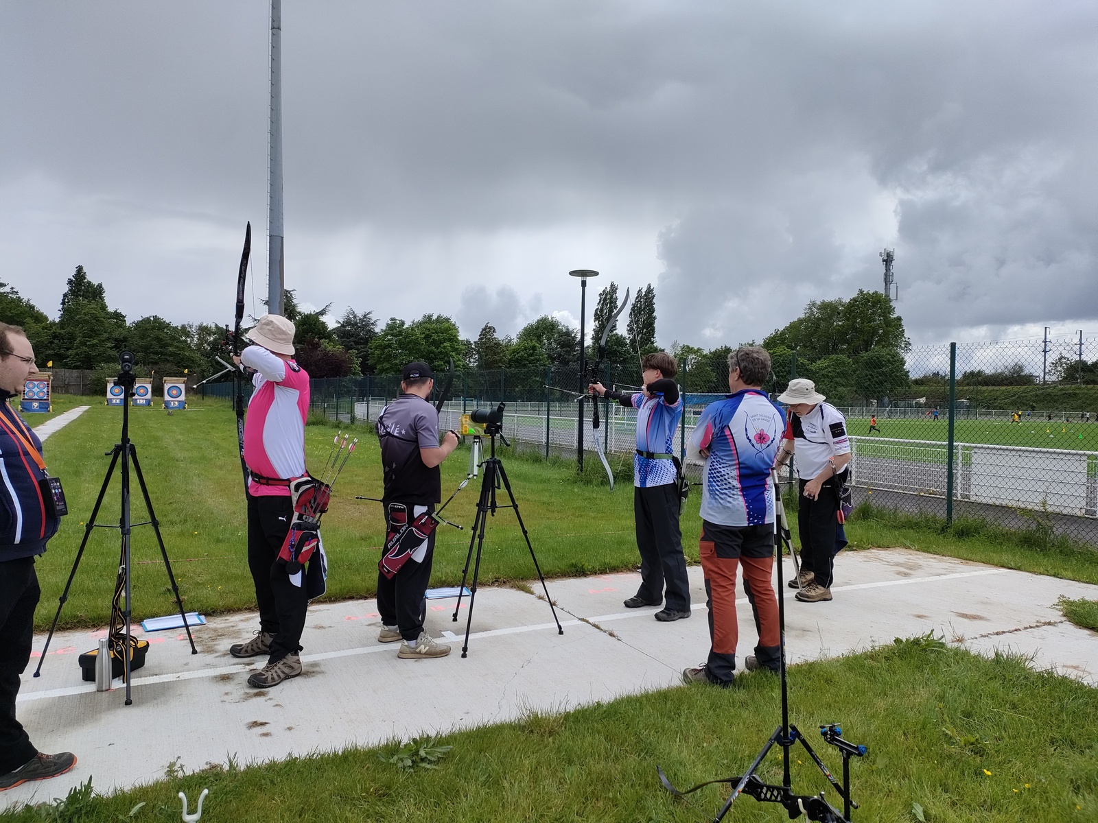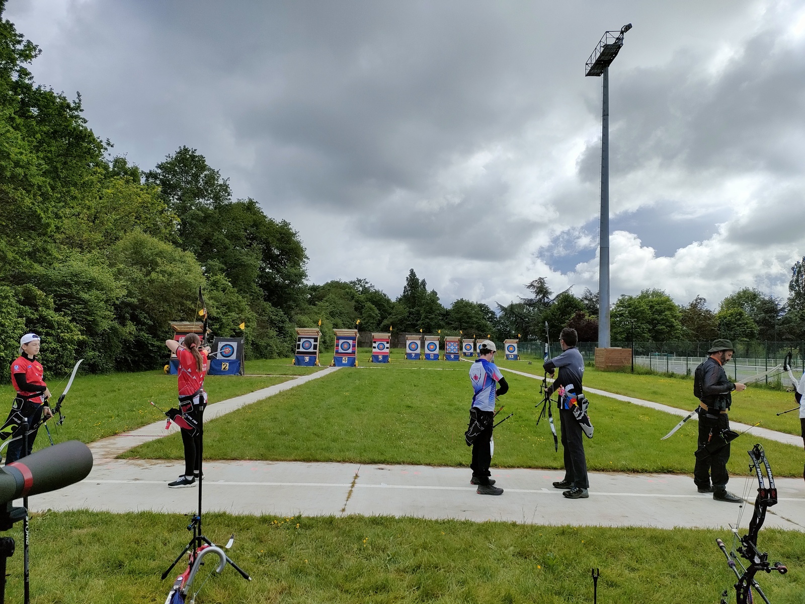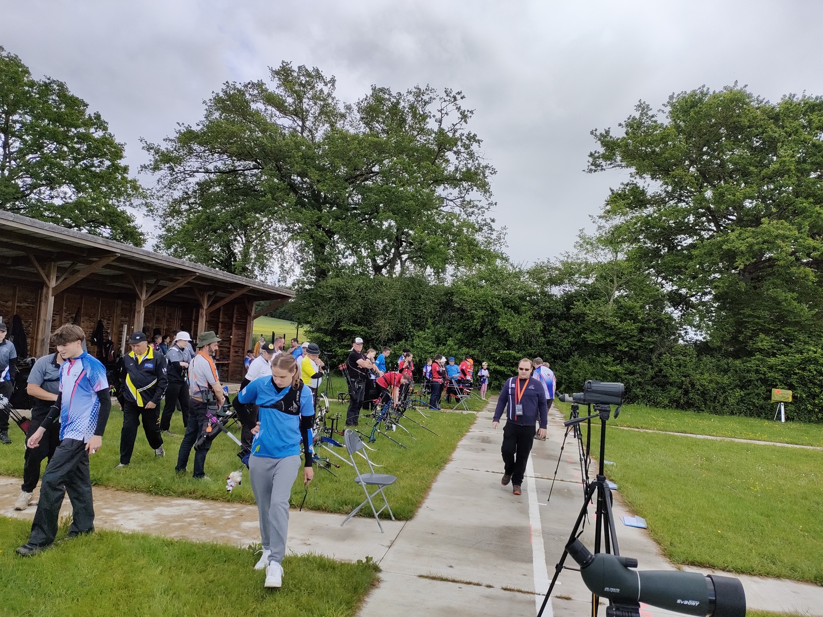 Les archers présents, jeunes et parfois ... moins jeunes, ont dû s'adapter à ces moments particuliers où la pluie ruisselle sur le visage au moment de viser, voire vous oblige à "revenir" pour reprendre la séquence de tir !