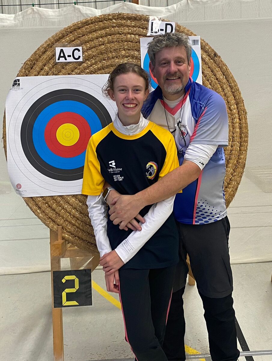 Ce week-end à Laillé, Sixtine et son père (Xavier) participaient au concours Salle organisé par les Archers de Laillé.
