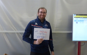 Nous lui souhaitons un beau parcours dans l'engagement qu'il vient de prendre, qui couronne une année de formation studieuse comme le soulignait Marie-Pierre. En dehors des règlements et des nombreuses précisions techniques à connaître, Olivier garde un très bon souvenir des nombreuses anecdotes venues enrichir la formation et a peu de regrets, hormis peut-être les délais pour connaître les résultats des examens, surtout celui du tronc commun ... qu'il a, par ailleurs, brillamment réussi ! Et merci à Laetitia, Manon, Pascal et Jean-Louis qui étaient présents pour soutenir Olivier ![]()